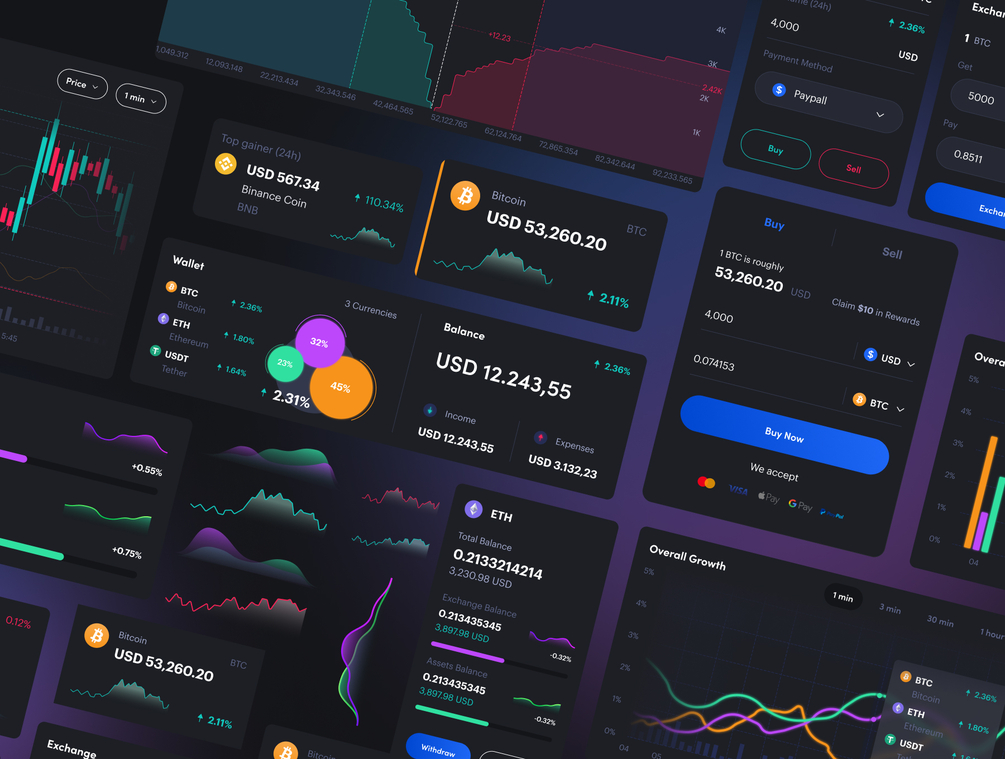 Drag, drop, and mix different parts to quickly build your own Cryptolly - Cryptocurrency Web & Dashboard UI Kit in a matter of minutes.