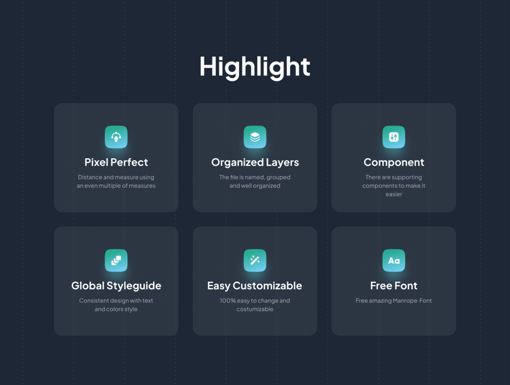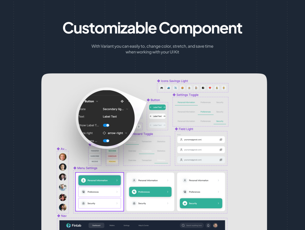 Finlab UI Kit is suitable and easy to fully customize to fits your needs. Finlab UI Kit gives you well layered and organized design, pixel perfect design, free amazing font, and supporting components to make it easier.
