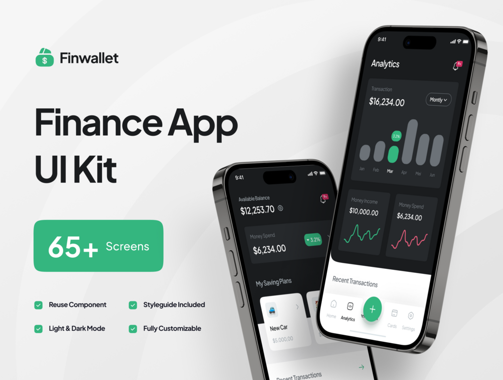 Finwallet is Finance Mobile App UI Kit with clean, neat and modern design. Finwallet UI Kit contains 65+ high-quality screens with 35+ light mode and 35+ dark mode.