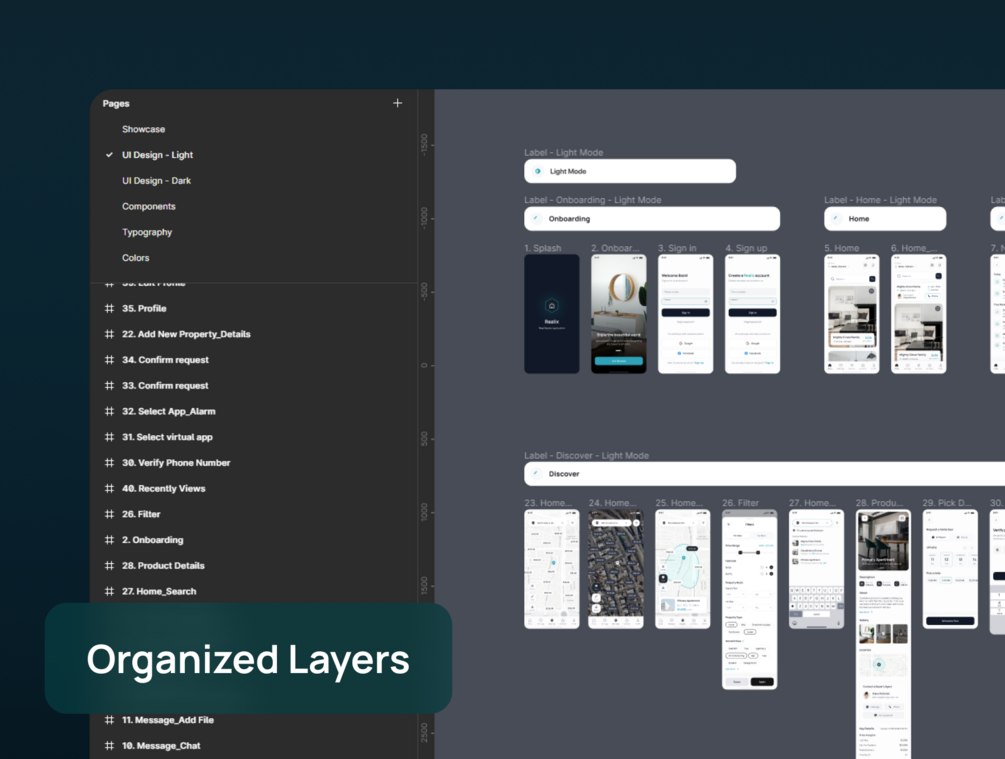 Realix is a Real estate App template in Figma. It has everything you need for a Real Estate agency website, such as finding, buying and selling properties. The kit is easy to fully customize and it has all features, including dynamic components & variants, color schemes and font style.
