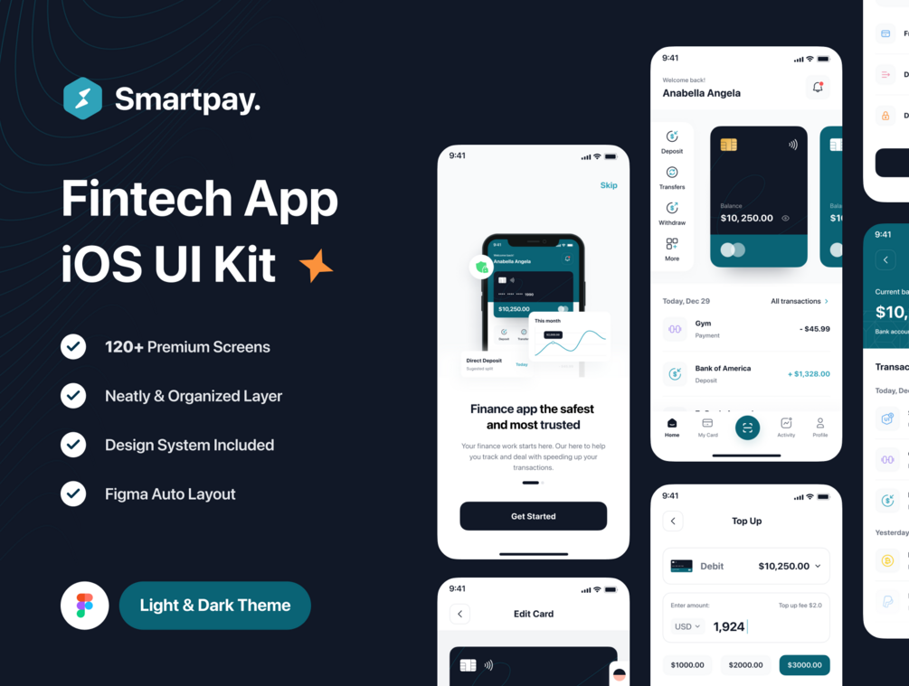 Smartpay is a Premium and High-Quality Fintech & Financial App UI Kit with 120+ high-quality screens and easy to use in Figma. Available in Light & Dark theme.